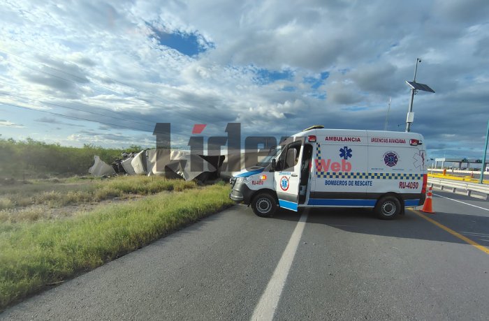 NUEVO LAREDO, TAM.- La volcadura de un tráiler en la carretera libre Monterrey-Nuevo Laredo, puso en evidencia los riesgos que representa el deficiente mantenimiento de unidades de carga pesada que circulan diariamente por esta transitada vía.