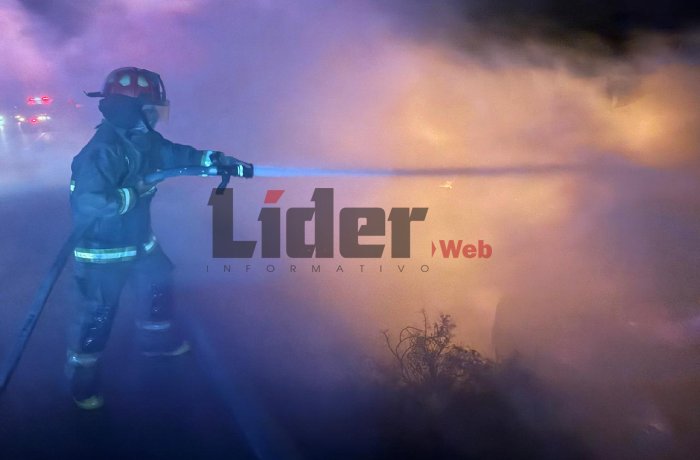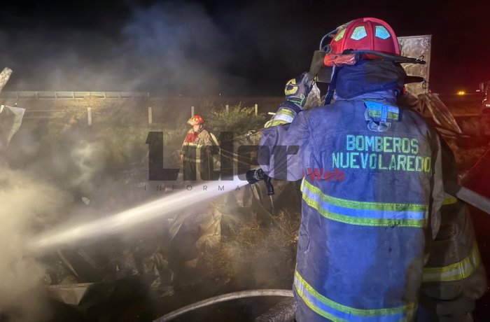 NUEVO LAREDO, TAM.- Un chofer perdió la vida la madrugada de este jueves luego de que el tráiler que conducía saliera de la carretera, chocara contra un vado y se incendiara en el kilómetro 178 de la vía libre Monterrey–Nuevo Laredo, informaron autoridades de emergencia.