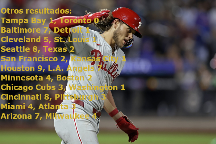 Alec Bohm sumó cuatro imparables y el mismo número de remolcadas, incluido un jonrón de tres carreras. Nick Castellanos totalizó tres hits y dos impulsadas.