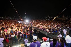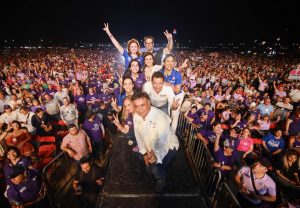 A medida que la euforia crecía entre los más de 30 mil asistentes, la lluvia arreciaba en el apoteósico cierre de campaña de Yahleel Abdala Carmona, candidata a la Presidencia Municipal de Nuevo Laredo por la coalición PAN-PRI “Fuerza y corazón por Tamaulipas” y sus compañeros de fórmula.
