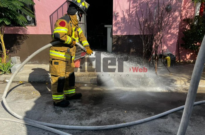 Al sitio acudieron elementos de Protección Civil y Bomberos, quienes tras controlar la situación confirmaron que el flamazo se originó en un pasillo del domicilio, donde resultaron consumidos una escalera y diversos enseres domésticos.