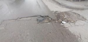 En la esquina donde se ubica el plantel, el pavimento de concreto está totalmente destrozado y forma un enorme bache que lastima los neumáticos de los vehículos que por ahí circulan.