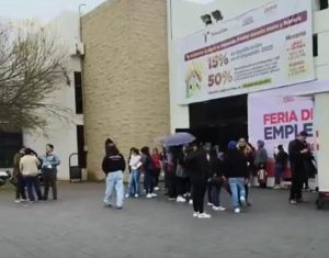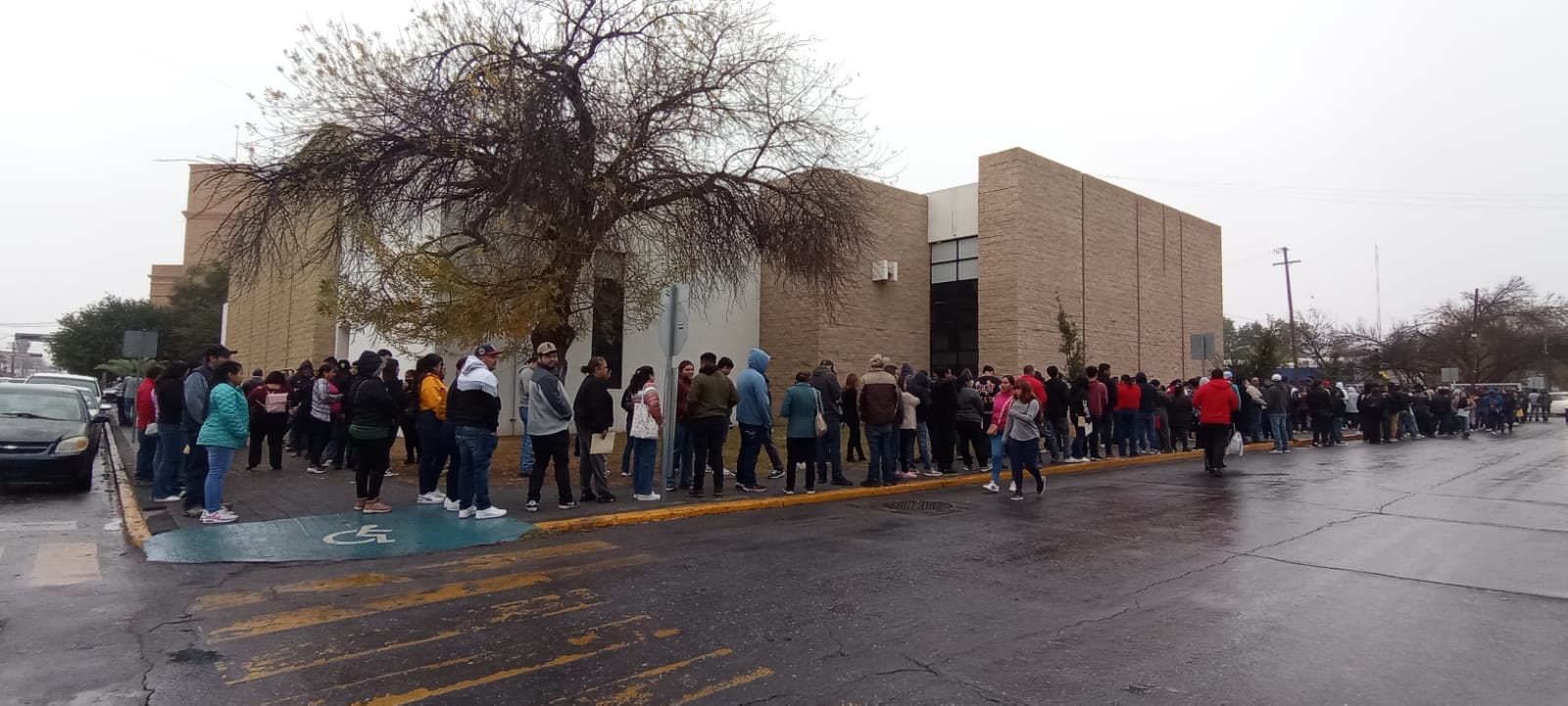 Nuevo Laredo, Tam.- La insensibilidad del gobierno de Carmen Lilia Canturosas Villarreal quedó en evidencia una vez más durante la Feria del Empleo, donde cientos de solicitantes fueron obligados a esperar de pie, a la intemperie, sin toldos ni resguardo ante la llovizna y el frío.