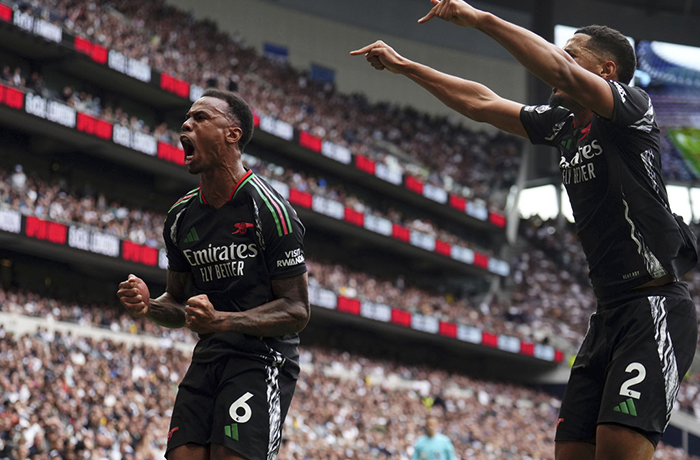 LONDRES.- Arsenal se marchó del estadio de su archirrival Tottenham con la victoria por tercera temporada consecutiva después que el cabezazo del brasileño Gabriel Magalhaes en el segundo tiempo sentenció el triunfo 1-0 en un ríspido clásico del norte de la Liga Premier.