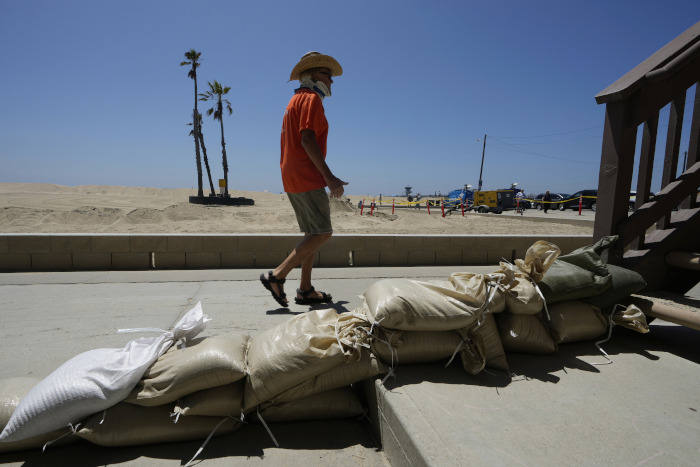 Funcionarios del sur de California también estaban reforzando los taludes de arena, construidos para proteger a comunidades costeras de baja altitud contra el oleaje invernal, como Huntington Beach, que se hace llamar “La ciudad del surf en Estados Unidos”.