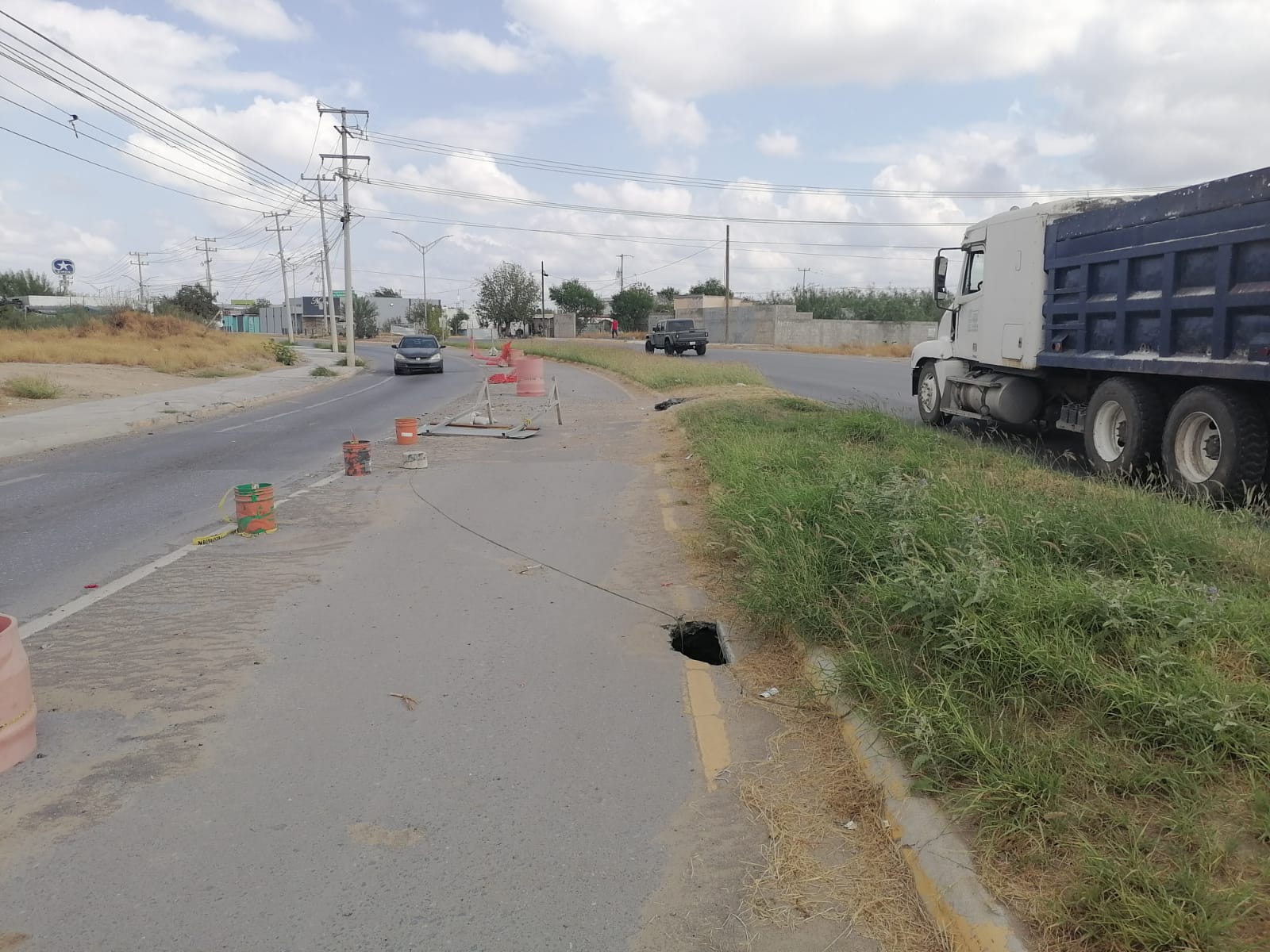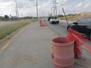 Nuevo Laredo, Tam.-Los meses pasan y el socavón de la colonia Los Presidentes, en las calles Prolongación Monterrey y Las Torres, sigue siendo ignorado por el Gobierno Municipal de Carmen Lilia Canturosas Villarreal.