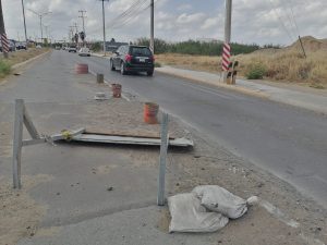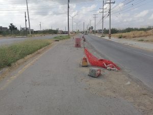 Solo existen elementos que lo aíslan, pero no hay trabajadores pese a que dice un anuncio en el lugar: obra en proceso.