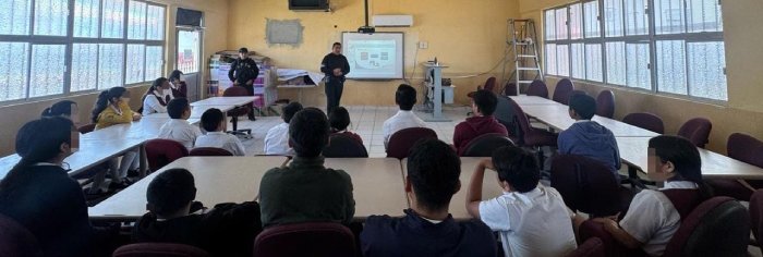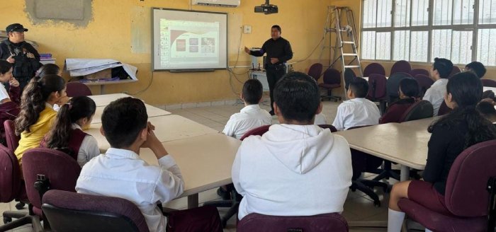 La actividad estuvo a cargo de la Unidad Móvil Especializada en Atención a la Violencia Familiar y de Género (UMEAV), cuyos elementos impartieron talleres escolares con los temas “Ciberbullying y Prevención de Adicciones”, dirigidos a grupos de estudiantes de primero, segundo y tercer grado.