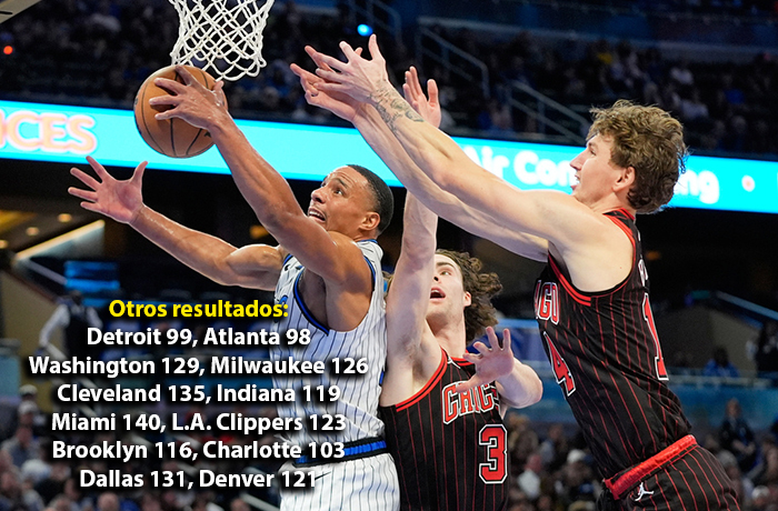 Josh Giddey logró 22 puntos, nueve rebotes y seis asistencias para Chicago en su cuarta derrota consecutiva. Matas Buzelis anotó 21 puntos, y Nikola Vucevic tuvo 20 puntos y 11 rebotes.