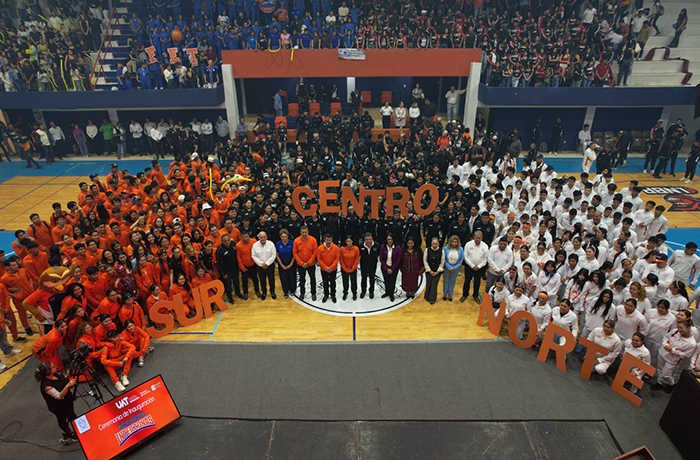 Tampico, Tam.- El rector de la Universidad Autónoma de Tamaulipas, Dámaso Anaya Alvarado, inauguró el Torneo Interzonas UAT 2026 en el Gimnasio Olímpico del Centro Universitario Sur, cuyo encuentro deportivo se celebra por primera ocasión en esta sede, reuniendo a los mejores estudiantes deportistas de las zonas norte, centro y sur de la máxima casa de estudios del estado.