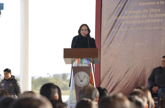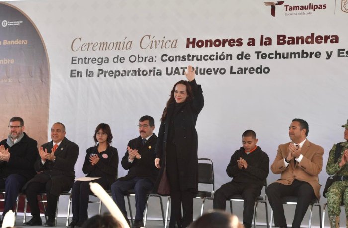 Nuevo Laredo, Tam.- En una acción que consolida a Nuevo Laredo como referente estatal en inversión educativa, la presidenta municipal Carmen Lilia Canturosas Villarreal refrendó su liderazgo junto al rector de la Universidad Autónoma de Tamaulipas, Dámaso Anaya Alvarado, al entregar dos obras de infraestructura en la Preparatoria UAT Nuevo Laredo, resultado de una inversión directa del Gobierno Municipal en favor de la educación media superior.