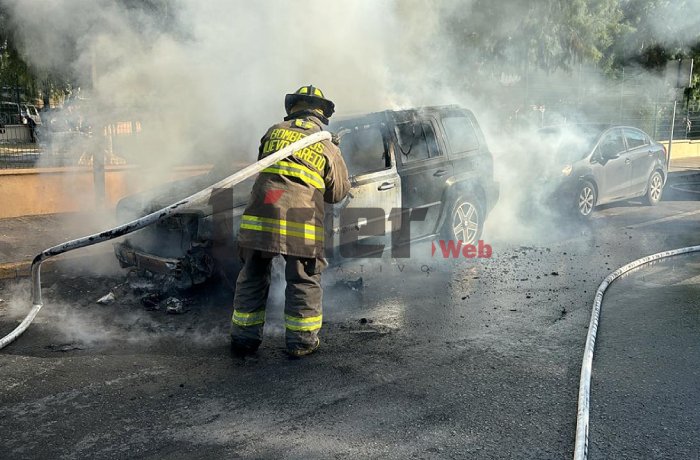 NUEVO LAREDO, TAM.- Un incendio en una camioneta Jeep Patriot desató la preocupación entre los visitantes del Parque Viveros. La rápida intervención de los equipos de Protección Civil y Bomberos evitó que el fuego se extendiera, aunque el vehículo resultó con daños irreparables.