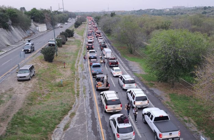 La tarde del martes, la fila vehicular llegaba hasta el Parque Viveros, es decir, a más de 3 kilómetros del Puente Internacional 2, el único para el paso hacia Estados Unidos, ya que el Puente Internacional I, está destinado solo a usuarios SENTRI.