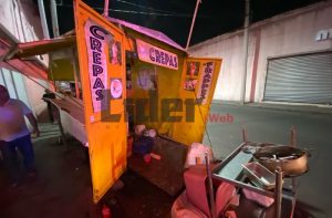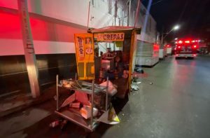 Después de pasar la intersección con la avenida Guerrero, Guadalupe pierde el control de su vehículo y choca de frente, contra un puesto semifijo de venta de crepas. La persona que estaba atendiendo salió ilesa.