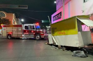 NUEVO LAREDO, TAM.- Una joven mujer que conducía distraída usando su teléfono celular, además de presentar aliento alcohólico, chocó contra un puesto semifijo de venta de crepas en el sector centro.