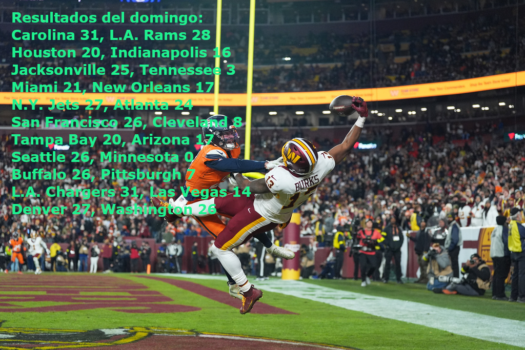 LANDOVER, Maryland, EE.UU. (AP) — Treylon Burks de los Commanders de Washington realizó una de las mejores recepciones de la temporada 2025 de la NFL, una atrapada cayendo con una sola mano en la esquina de la zona de anotación contra los Broncos de Denver la noche del domingo.