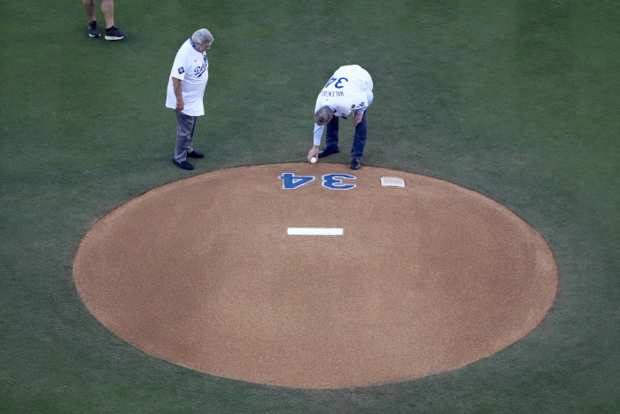 Ni Orel Hershiser ni su también excompañero Steve Yeager se encargaron del primer lanzamiento. En vez de ello, Hershiser colocó la pelota en la parte posterior del montículo, donde se había pintado el número 34.