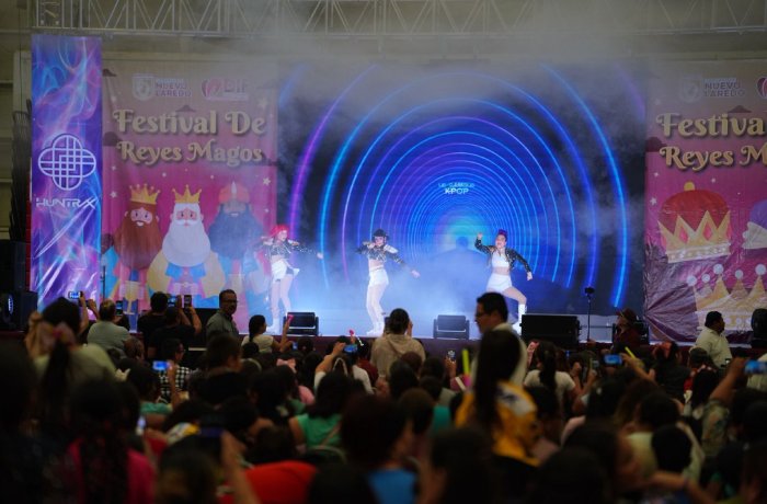 Nuevo Laredo, Tam.- El Polyforum La Fe se llenó de alegría, ilusión y sonrisas con la celebración del Festival de Reyes Magos 2026, que reunió a más de 7 mil personas en una gran fiesta organizada por el Sistema DIF Nuevo Laredo y el Gobierno Municipal, reafirmando el compromiso de brindar momentos inolvidables a las familias neolaredenses.