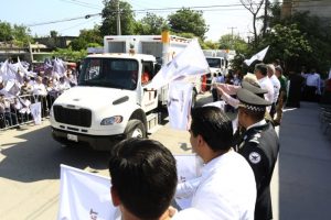 Por su parte, la secretaria de Finanzas, Adriana Lozano Rodríguez, explicó que los camiones recolectores de basura son el resultado de la firma de convenio de colaboración y de los trabajos que comprende el fideicomiso denominado Fondo de Capitalidad.