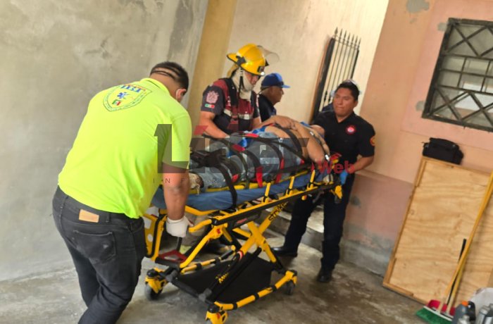 NUEVO LAREDO, TAM.- Un adolescente de 15 años permanece en estado crítico en el Hospital General, luego de sufrir un accidente mientras realizaba trabajos de impermeabilización en una vivienda de la colonia Colinas del Sur. El menor, identificado como Arath, cayó desde una escalera y se lesionó gravemente con varillas de construcción.
