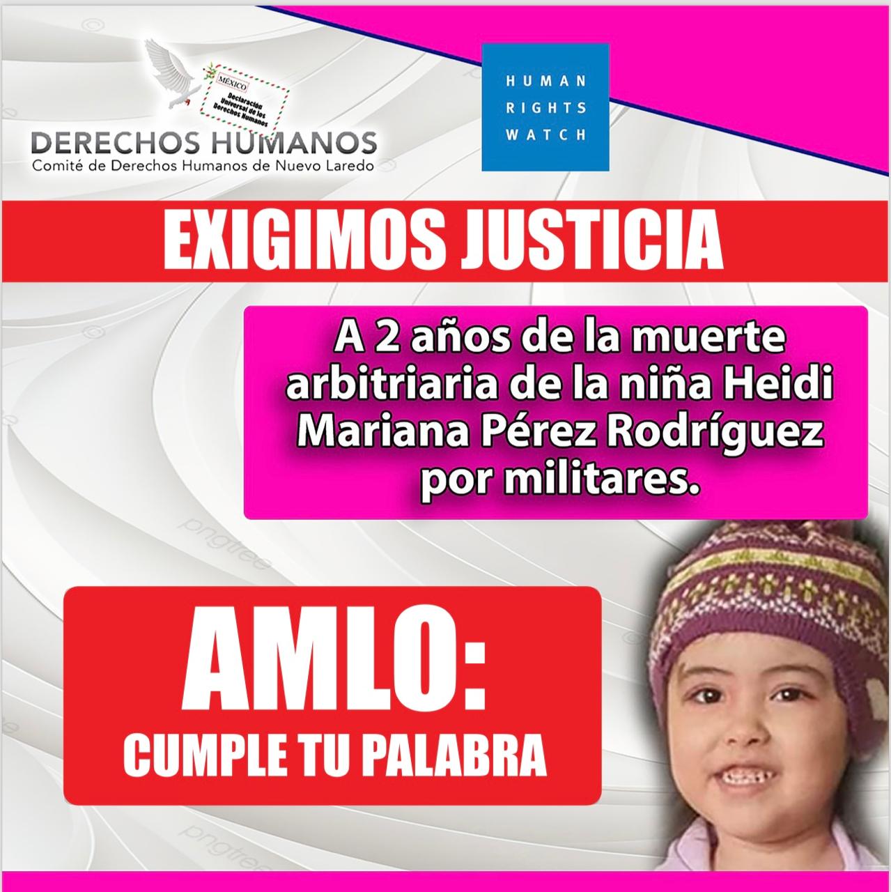 Heidi Pérez murió por unos disparos hechos contra el auto en el que viajaba con su familia en el centro de Nuevo Laredo la noche del 31 de agosto de 2022. Su familia dice que unos soldados dispararon contra el auto, lo que causó la muerte de la niña.