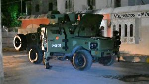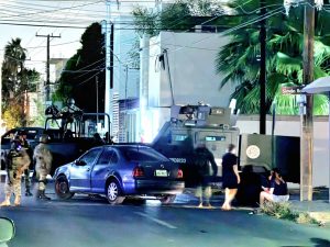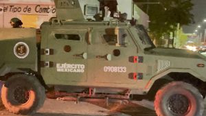 Nuevo Laredo, Tam.— Personal militar a bordo de un vehículo blindado modelo “Ocelotl”, diseñado para uso bélico y perteneciente a la Secretaría de la Defensa Nacional (Sedena), se pasó un alto y, con las luces apagadas, chocó contra un Volkswagen Jetta modelo 1999 y un Camaro 2018, en el cruce de Bolívar y la avenida 20 de Noviembre.
