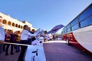 Nuevo Laredo, Tam.- Con visión y compromiso social, la presidenta municipal Carmen Lilia Canturosas Villarreal dio un paso firme para dignificar el servicio de transporte público en Nuevo Laredo, al encabezar el banderazo de salida de 12 nuevas unidades, todos último modelo y equipados con aire acondicionado, una acción que responde directamente a una de las principales demandas ciudadanas.