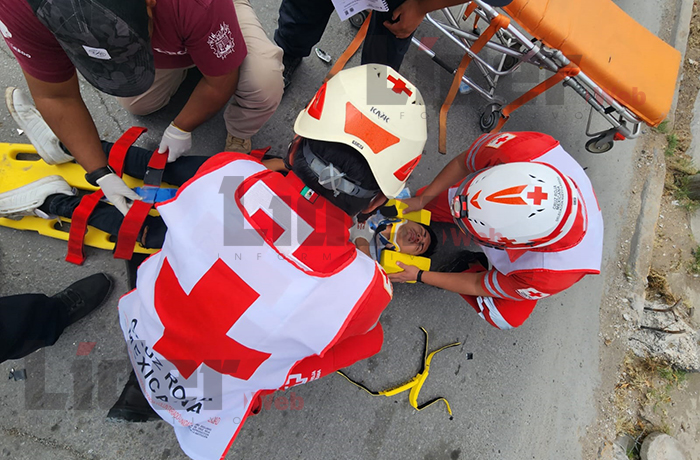 Paramédicos de la Cruz Roja Mexicana auxiliaron a Francisco Javier, de 26 años, quien una vez estabilizado fue llevado al Hospital General de Zona “Solidaridad” donde quedó internado.