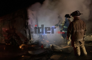 De acuerdo con el gerente de la empresa de paquetería “La Mejor Opción”, Víctor Hugo “M”, el fallecido era chofer de una camioneta Ford Transit Jumbo 2025, color blanco, procedente de Nuevo León. El vehículo impactó de frente contra un tráiler de la empresa González Truck Lines, que transportaba perfiles de acero, lo que provocó un incendio inmediato tras la colisión.