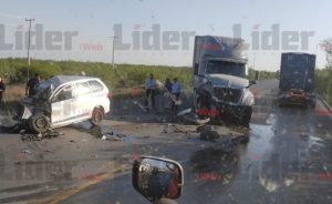 NUEVO LAREDO, TAM .- Un hombre de 32 años perdió la vida de manera instantánea tras un violento choque frontal contra un tractocamión, ocurrido sobre el Radial 3, una vía clave que conecta el Segundo Anillo Periférico con el Libramiento Mex 2, al poniente de la ciudad.