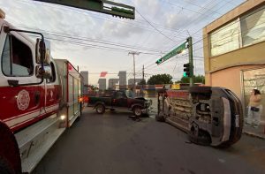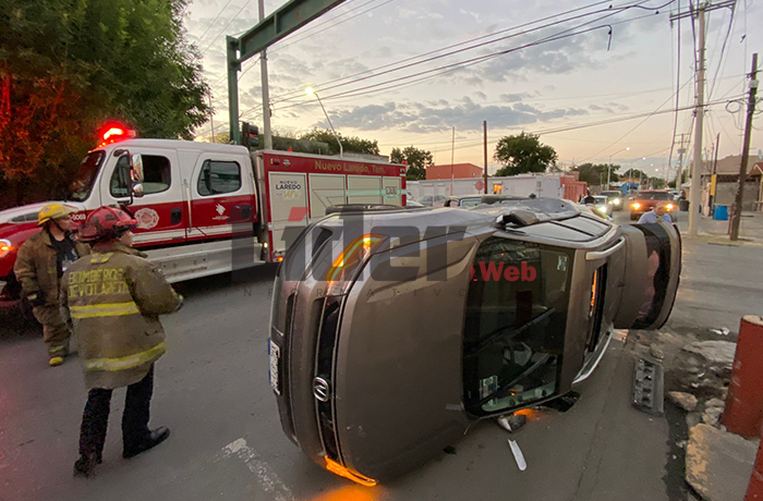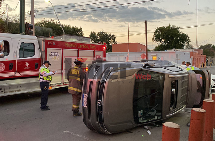NUEVO LAREDO, TAM.- Un accidente vial ocurrido en la colonia Guerrero dejó a una mujer ilesa tras volcar su camioneta al pasar un semáforo en rojo. El incidente tuvo lugar en el cruce de las avenidas Leandro Valle y Venustiano Carranza.