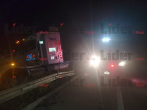 El percance ocurrió a la altura del kilómetro 188, cuando la pesada unidad circulaba de sur a norte. De acuerdo con el reporte, un vehículo se le atravesó repentinamente, lo que obligó al chofer a desviarse para evitar un choque frontal.