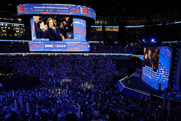 En Chicago, los senadores Chuck Schumer, el líder demócrata en el Senado, y Bernie Sanders, el independiente por Vermont que es respetado por los progresistas, elogiaron a Harris. Y en una aparición que posiblemente tenía como objetivo irritar a Trump, su exsecretaria de prensa Stephanie Grisham —quien ahora es una mordaz crítica de su anterior jefe— también subió al escenario de la convención.