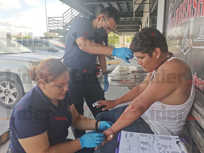 Empleados de un sitio de taxis, dieron aviso al 9-1-1 y se envió al personal paramédico de la Dirección de Protección Civil y Bomberos, que atendieron al motociclista, que estaba en crisis nerviosa.