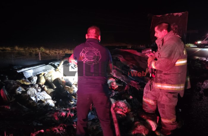 Elementos de Bomberos de Rescate y personal de Protección Civil trabajaron varios minutos hasta controlar el fuego, que consumió completamente la caja del tráiler y parte de la estructura del vehículo.