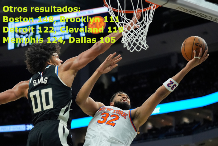 El dominicano Karl-Anthony Towns aportó 17 puntos y 13 rebotes, Landry Shamet agregó 15 unidades, Josh Hart terminó con 12, mientras que Mikal Bridges y Mohamed Diawara anotaron 10 cada uno por los Knicks, que encestaron 21 de 42 triples.