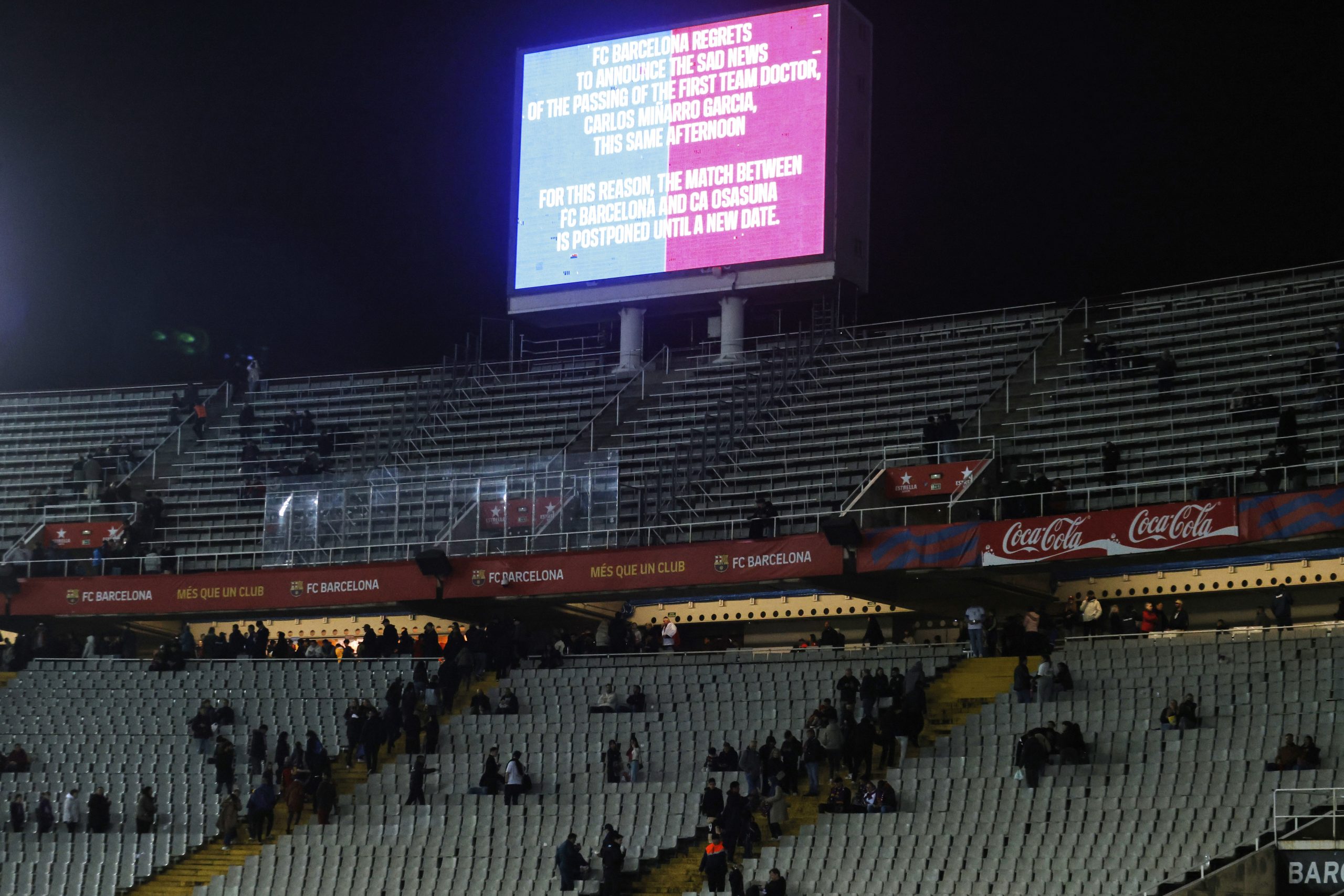Partido del Barcelona ante Osasuna se pospone tras la muerte de un miembro de su personal médico