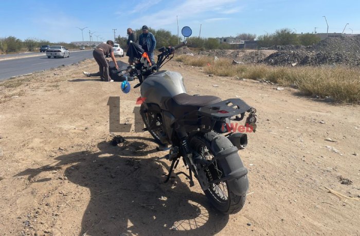 NUEVO LAREDO, TAM.- Un accidente de motocicleta movilizó a cuerpos de emergencia la tarde de este jueves sobre el bulevar Municipio Libre, en Nuevo Laredo, luego de que un joven conductor perdiera el control de su unidad y saliera de la cinta asfáltica en una curva del tramo ubicado detrás de la colonia Santa Elena.