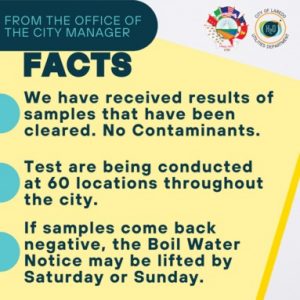 La ciudad de Laredo está trabajando diligentemente en todos los departamentos para resolver el aviso actual de hervir el agua, garantizando así la seguridad y el bienestar de nuestra comunidad. Se están realizando pruebas y seguimos siendo optimistas de que el problema se resolverá por completo para el fin de semana. Gracias a los residentes por su paciencia y cooperación durante este tiempo.