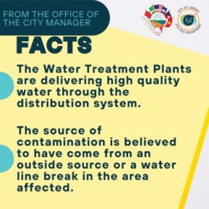 El personal de Servicios Públicos ha estado tomando muestras de agua en toda la red de distribución de la ciudad y ha realizado pruebas en más de 60 lugares para garantizar la calidad del agua. El departamento ha estado trabajando en estrecha colaboración con la Comisión de Calidad Ambiental de Texas (TCEQ) para identificar la fuente de contaminación, que se cree que es externa. El personal también coordinó el transporte de agua a lugares críticos y trabajó para limpiar las áreas afectadas. El equipo continúa trabajando para resolver el problema y garantizar el suministro de agua segura.