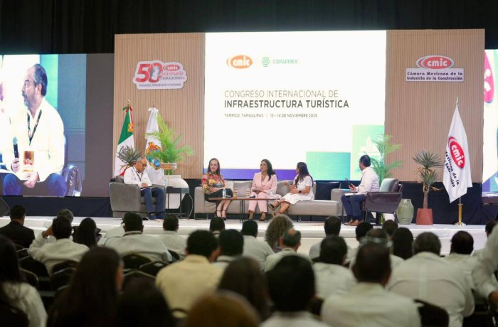 La alcaldesa formó parte del foro “Oportunidades de inversión: infraestructura de calidad para un turismo sostenible”, junto a Yvette Valenzuela Becerra, titular de la Unidad de Banca de Empresas de Bancomext; Mónica Zacil Villarreal Anaya, alcaldesa de Tampico; Héctor Flores Santana, presidente de la Comisión Nacional de Turismo de Coparmex; y Quel Galván Pelayo, vicepresidente ejecutivo de Desarrollo Empresarial en Infraestructura Privada de la CMIC, quien fungió como moderador.