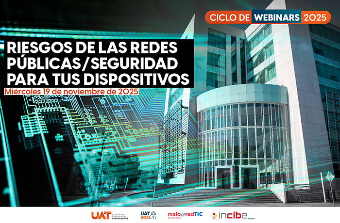 Las sesiones realizadas hasta ahora han abordado temas como: “Conociendo la ciberseguridad”, “La importancia de la información en tu universidad” y “Seguridad en tu cuenta universitaria: protege tu vida digital con doble factor”. Cada encuentro se transmite de manera interactiva a través de Microsoft Teams y se retransmite el mismo día mediante la página de Facebook Videoconferencia UAT.La Universidad Autónoma de Tamaulipas (UAT) promueve la cultura de responsabilidad digital con el ciclo “Webinars 2025: Adopta una cultura del uso adecuado y responsable de las TIC”, diseñado para proporcionar herramientas y conocimientos esenciales que permitan a la comunidad enfrentar con mayor seguridad los desafíos de la vida digital.