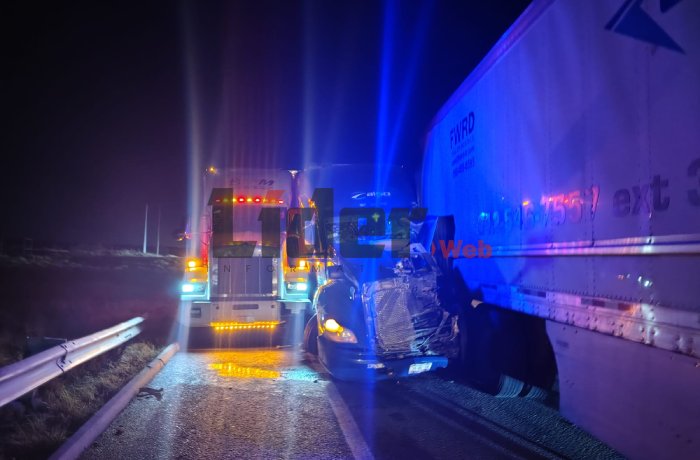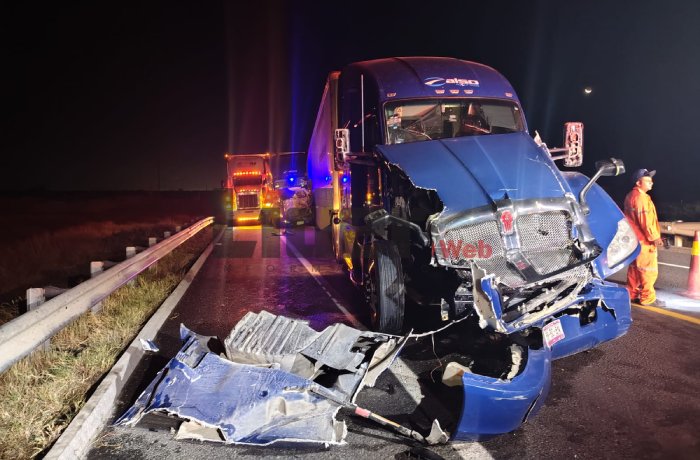 NUEVO LAREDO, TAM.- Un aparatoso accidente se registró en el kilómetro 178 de la Carretera Nacional, en los carriles de norte a sur, donde se vieron involucrados tres tractocamiones.