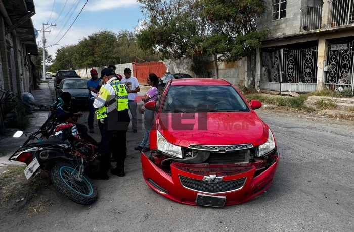La motocicleta, una unidad Italika, era conducida por Miguel Ángel, de 20 años, quien se desplazaba de oriente a poniente sobre la calle Anáhuac y no logró evitar la colisión ante la maniobra del automóvil.