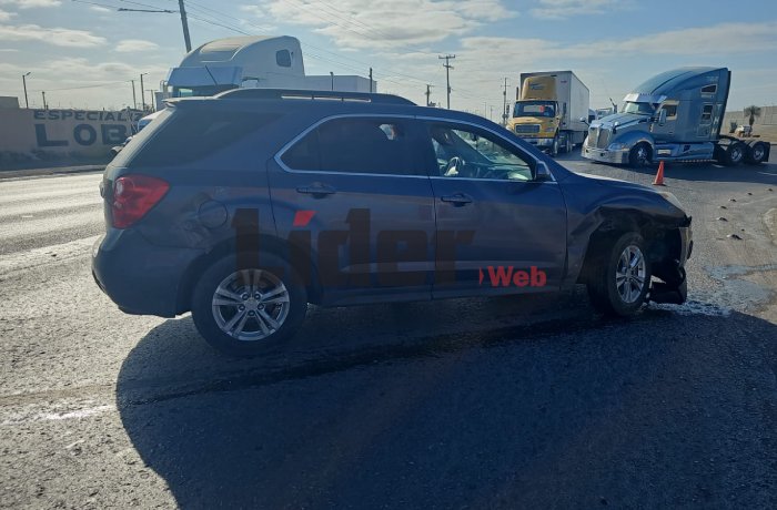 NUEVO LAREDO, TAM.- Un accidente vehicular registrado sobre la Carretera Aeropuerto, frente a las instalaciones de una empresa de transporte y la terminal aérea, dejó como saldo daños materiales y la movilización de autoridades viales.