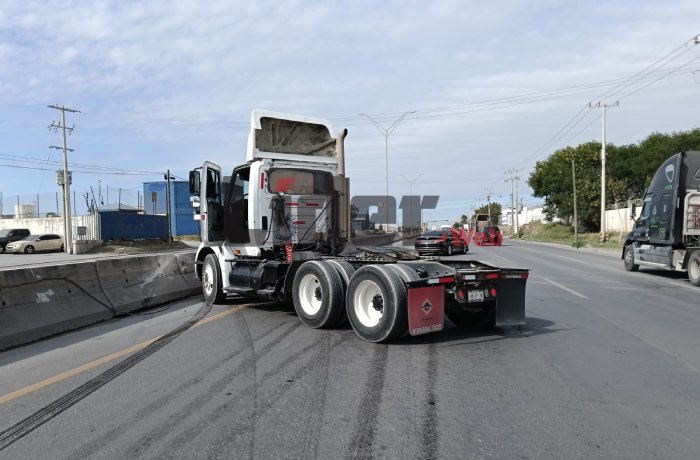 NUEVO LAREDO, TAM.- Un percance vial provocó afectaciones a la circulación sobre la Carretera Aeropuerto, en esta frontera, luego de la colisión entre un tractocamión y un automóvil particular.