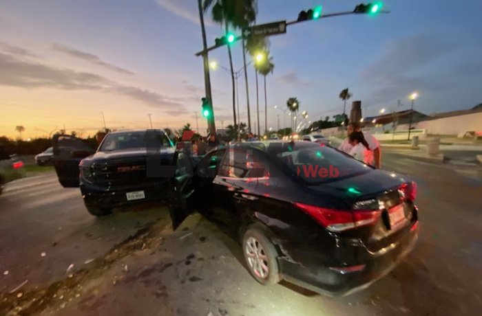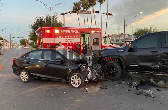 NUEVO LAREDO, TAM.- Una aparente distracción al volante provocó un fuerte accidente vial en el cruce de César López de Lara y Héroe de Nacataz, cuando una conductora se pasó el semáforo en rojo y se impactó contra una camioneta de modelo reciente.