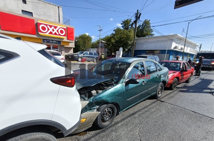 NUEVO LAREDO, TAM.- Un choque múltiple registrado sobre la avenida Álvaro Obregón, entre las calles Lincoln y Venezuela, dejó como saldo cuantiosos daños materiales y congestionamiento vehicular en la zona.