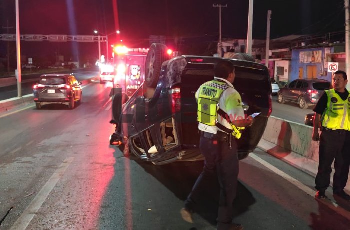 NUEVO LAREDO, TAM.- Una aparatosa volcadura registrada en el puente de la Calzada de los Héroes volvió a encender las alertas sobre la conducción a alta velocidad en esta transitada zona del poniente de la ciudad.