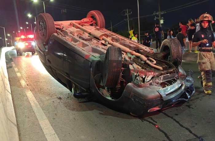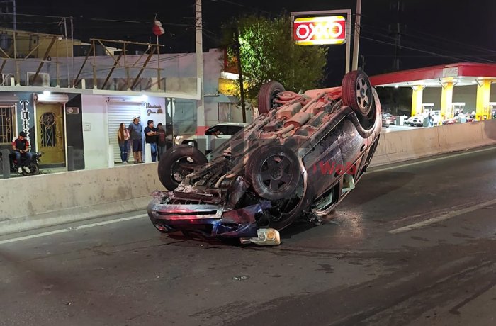 El accidente ocurrió a la altura de la calle Viena, frente a las colonias Unidad Nacional y 20 de Noviembre, cuando una camioneta Saturn, en la que viajaban tres jóvenes, perdió el control y terminó volcada sobre el puente.